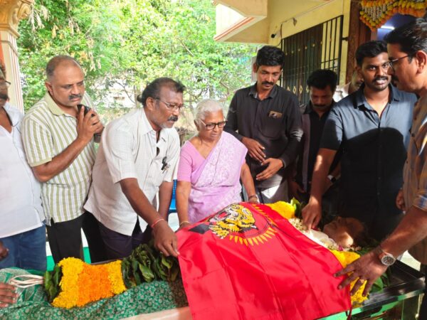 ராஜீவ் கொலை வழக்கில் குற்றம் சாட்ட பட்ட சாந்தன் இறுதி வணக்கம் செலுத்தும் காட்சி