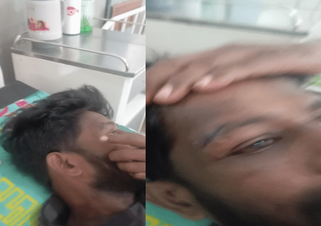 தலையில் நான்கு தையல் போடப்பட்ட நிலையில் அந்த வாயதன தந்தை காணப்படுகின்றார் .