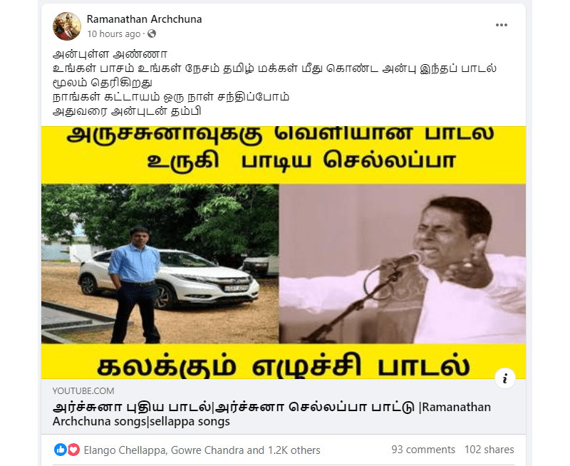 அர்ச்சுனா பாடல் கேட்டு உருகிய பதிவு