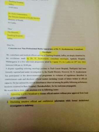 மருத்துவர் ஜெயக்குமாருக்கு எதிராக சத்யமூர்த்தி நடவடிக்கை ,மருத்துவத் துறை ஊழல்களை அம்பலப்படுத்திய மகரகம புற்று நோய் சிறப்பு வைத்திய நிபுணர் வைத்திய கலாநிதி ஜெயக்குமாருக்கு ,நடவடிக்கை எடுக்கத் கோரி