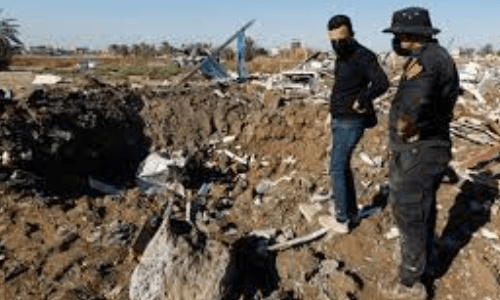 ஈராக்கில் உள்ள அமெரிக்கா இராணுவ முகாம் மீது இஸ்ரேல் ஆதரவு குழுக்கள் நடத்திய ஏவுகணை தாக்குதலில் சிதறி எரியும் முகாம் .
